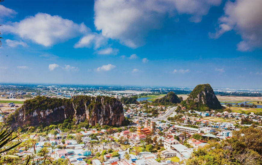 Situated 9 kilometers away from Da Nang City, Marble Mountain lies on the road between this city and Hoi An – the famous ancient city. Thus, if you plan to go to Da Nang from Hoi An, you can take some time to drop by this mountain for a few hours. Or you can book this Mountains of Danang Day Trip from Hoi An tour which is only 61$/person. The whole area consists of 5 different mountains called Moc Son, Thuy Son, Tho Son, Kim Son, and Hoa Son. All of those mountains were named nearly 200 years ago by Minh Mang King (the 2nd Emperor of the Nguyen dynasty) which represents 5 elements to create the universe, namely wood, water, earth, metal, and fire.