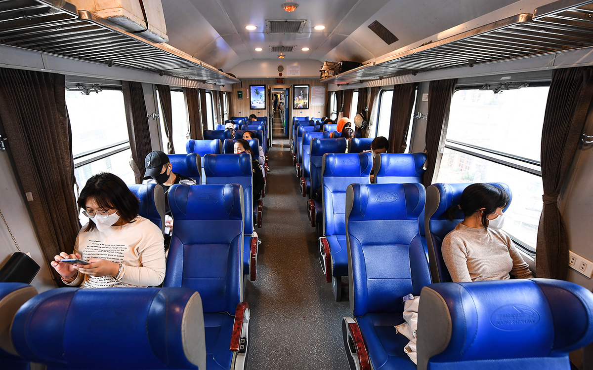 Each carriage has air conditioning and a fan to keep you cool in the summer and warm in the winter. There are power outlets in some cabins so you don't have to worry about where to charge your devices. There are also overhead TVs broadcasting Vietnamese programs in some cabins.